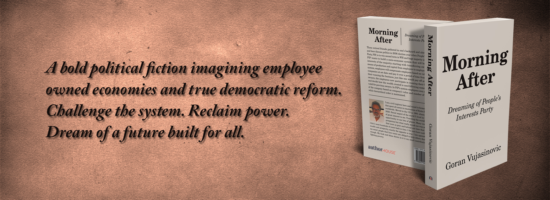 In Morning After: Dreaming of a People’s Interests Party, Goran Vujasinovic presents a provocative and hopeful vision of a political awakening—one where ordinary people reclaim power from the elite and reshape society on the principles of fairness, transparency, and shared prosperity. Framed through the lens of three lifelong friends reflecting on life, politics, and purpose, this work of political fiction dares to imagine a future where the economy works for all, not just the few.